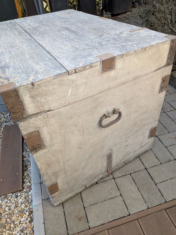 Biete eine sehr dekorative alte große Holztruhe