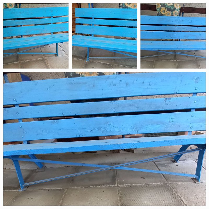 Solide massive Garten-Sitzbank mit Metallfüßen. Bank kann beliebig neu gestrichen und gestaltet werden.