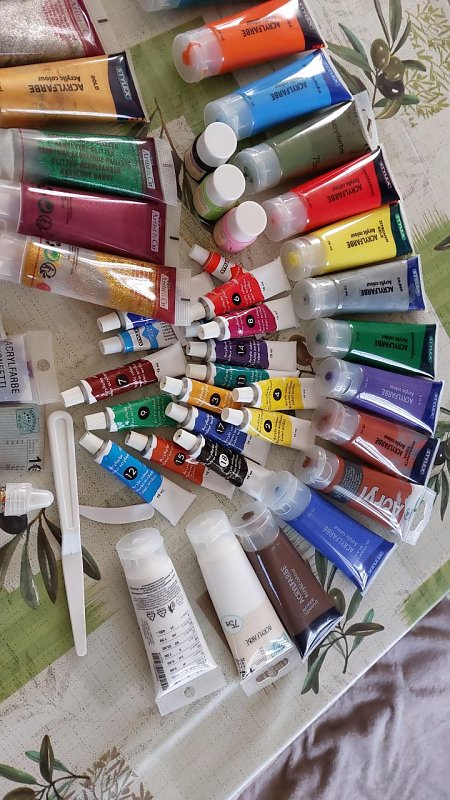 Gebe hier über 60 Acrylmalfarben ab.