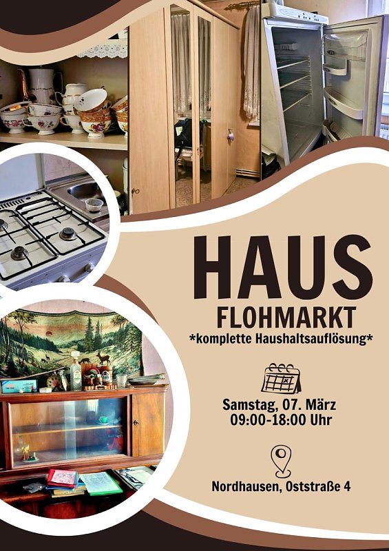 Haushaltsauflösung  (Foto: ) Hausflohmarkt und Haushaltsauflösung am Samstag den 07.03.26 in der Oststraße 4 in Nordhausen.