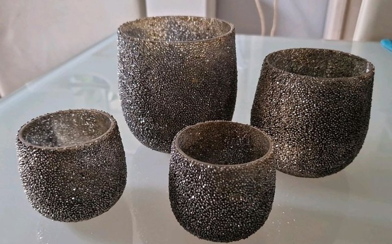 Glas (Foto: ) Windlicht Teelicht Set 4 teilig grau Silber