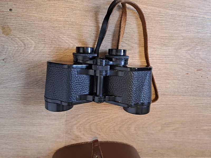 Fernglas und Tasche sind im gebrauchten zustand normale Gebrauchsspuren sind am Lack zu erkennen die Optik Nebel-Pilz frei Justierung ist Punkt genau . Klare Durchsicht.