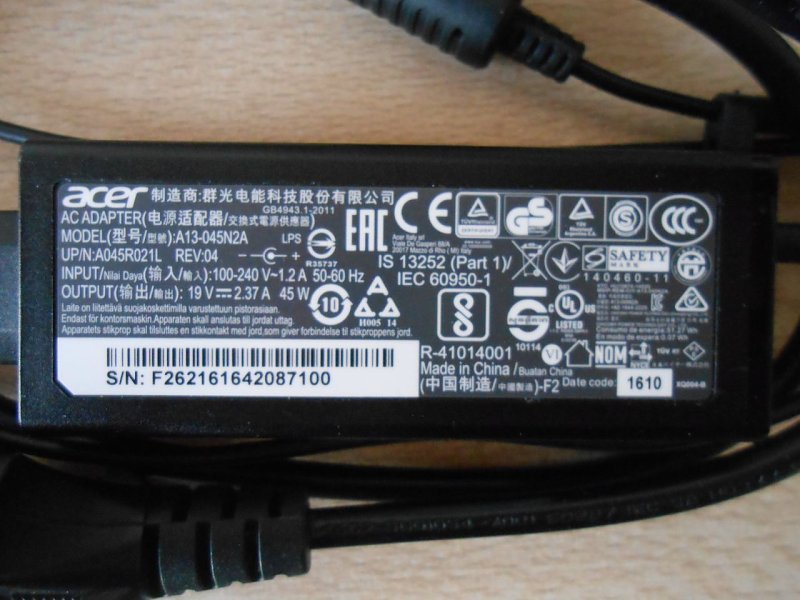 Biete: acer Netzteil 45 Watt, mit Anschlußkabel, 5 Euro
