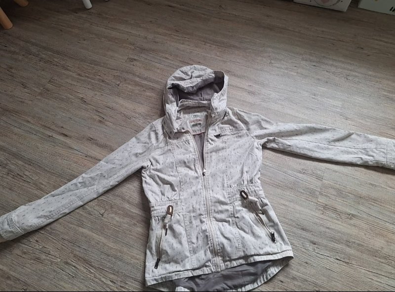 Biete gut gebrauchte Übergangsjacke in beige mit hübschen Mustern