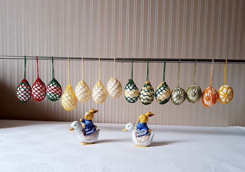 Umhäkelte Ostereier für den Osterstrauß- Feine Handarbeit