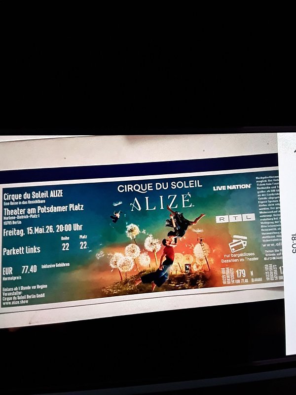 Biete im Auftrag 2 Eintrittskarten für Freitag, den 15. Mai 2026 an. Die Karten sind für "Cirque du Soleil", 20 Uhr im Theater am Potsdamer Platz in Berlin. Preis pro Karte 77 €.MfG