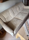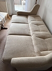 Möno - Komfortsitz -Federkern , 3 -Sitzer komfort - Kipp-Sofa , 2015 Kaufdatum ,Armlehne fest , Rücken gleiche Stoff , Farbe Sand , 1 Hocker mit Teppichrollen klappbar ,