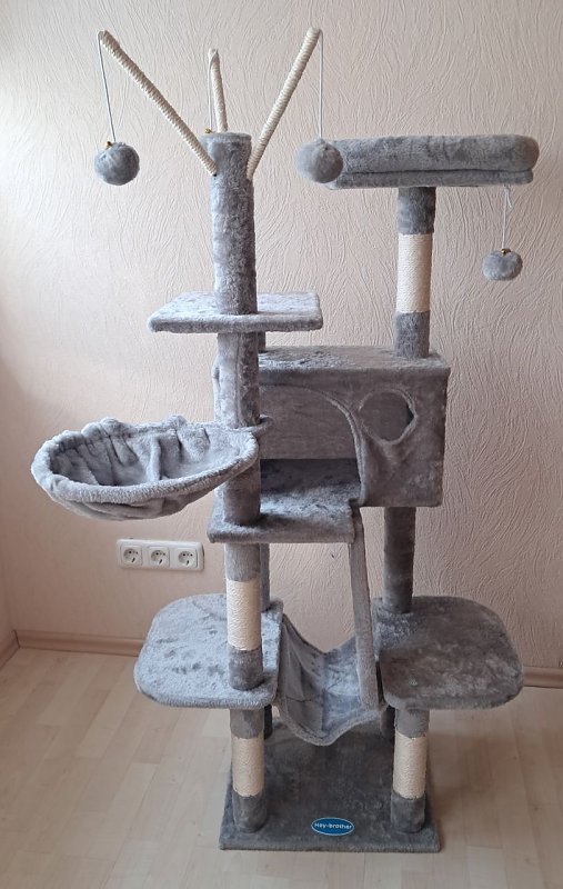 Verkaufe neuwertigen "Hey -brother" Katzen- Kratzbaum MPJ019-SW, Höhe 140 cm, Breite 71 cm, Tiefe 35 cm, N.W 9,9 kg, GW: 10,7 kg.Der Kratzbaum wurde von unserem Kater leider nicht angenommen, daher ohne Gebrauchsspruren. Der Kratzbaum ist noch aufgebaut.