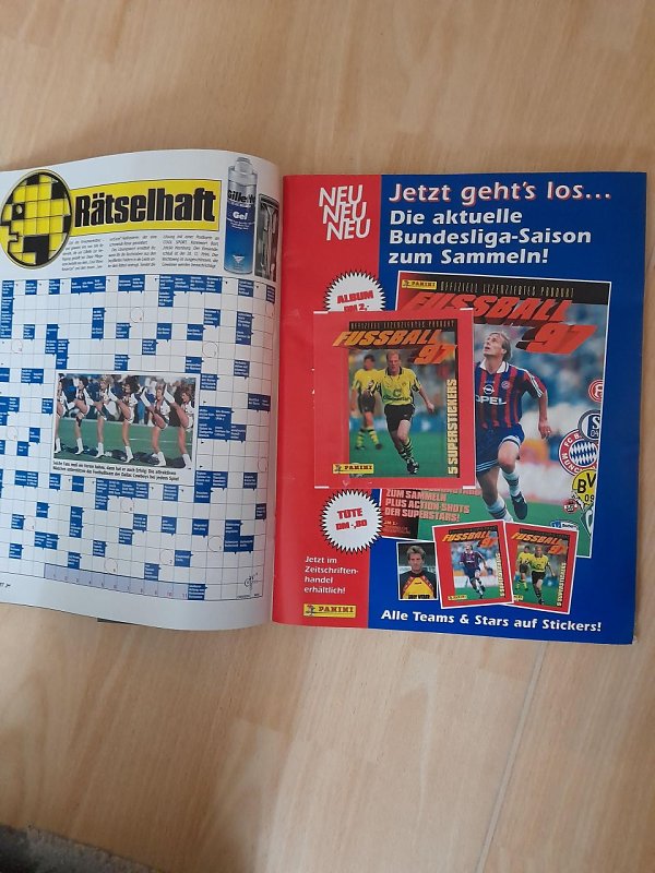 Wie ersichtlich ist es nicht nur das Heft sondern auch mit allen Stickern (außen) sowie ein originales Stickertütchen (Panini) und auch alle Poster sind noch original drin!