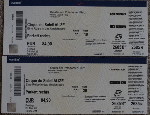 Mit viel Glück erworben, muss ich diese tollen Eintrittskarten nun aus Termingründen abgeben.Ein unvergesslicher Tag in Berlin wartet auf Sie!