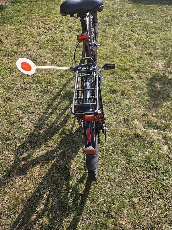 Abstandhalter am Gepäckträger für Fahrt auf der Straße.