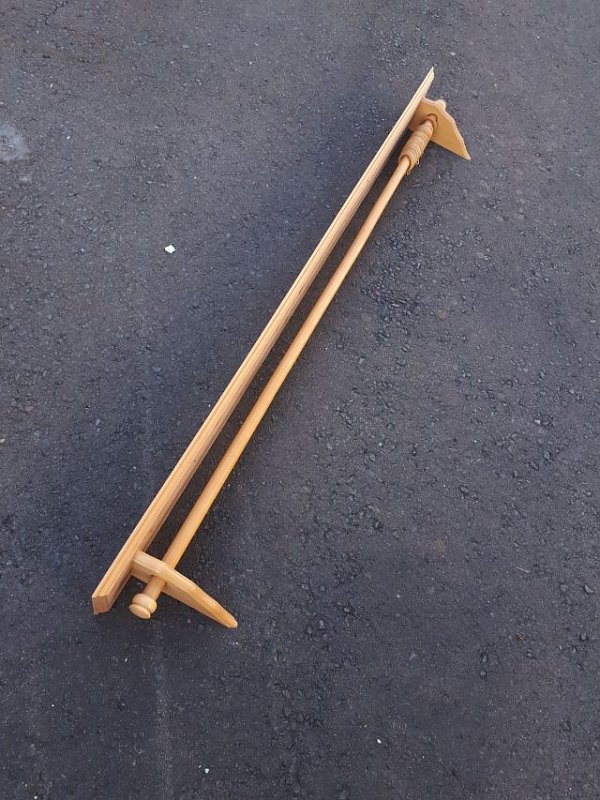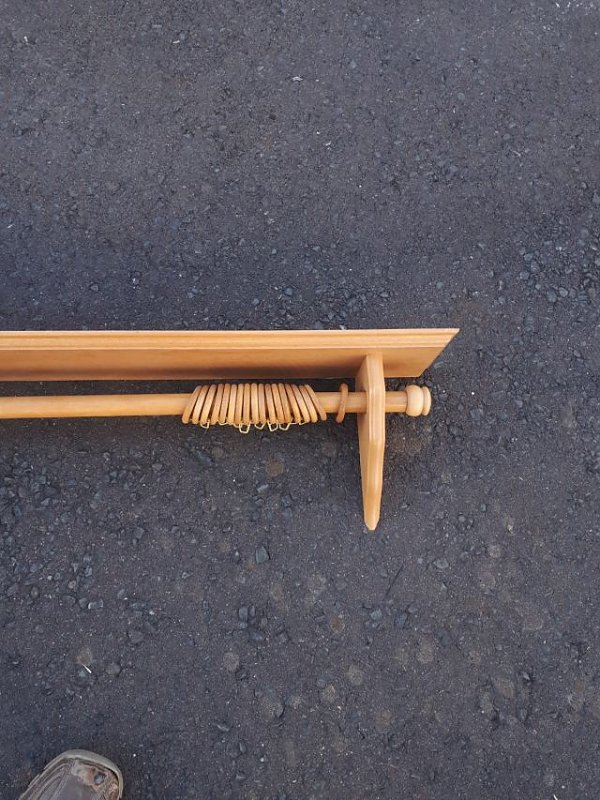 Verkaufe rustikale Gardinenstange Holz mit Holzringen und Gardinenhaltern , Brettlänge 180 cm , Innenmass zwischen den Haltern 1,58 m
