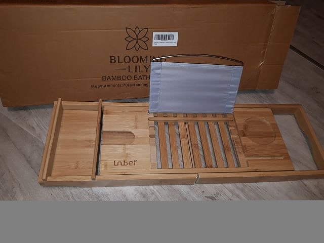 Verkaufe wegen Neuanschaffung eine nahezu Neue Relaxablage für die Badewanne - Caddy von Tuevob aus Naturbambus - einstellbar für div. Badewannenbreiten 70- 106 m, Breite 22 cm , Stärke 4 cm mit Tabletthalter , Abstellmöglichkeit für Gläser Gewicht 1,64 kg Privatverkauf , keine Gewährleistung , keine Rücknahme Artikelstandort NordhausenPreis 20 € VHB