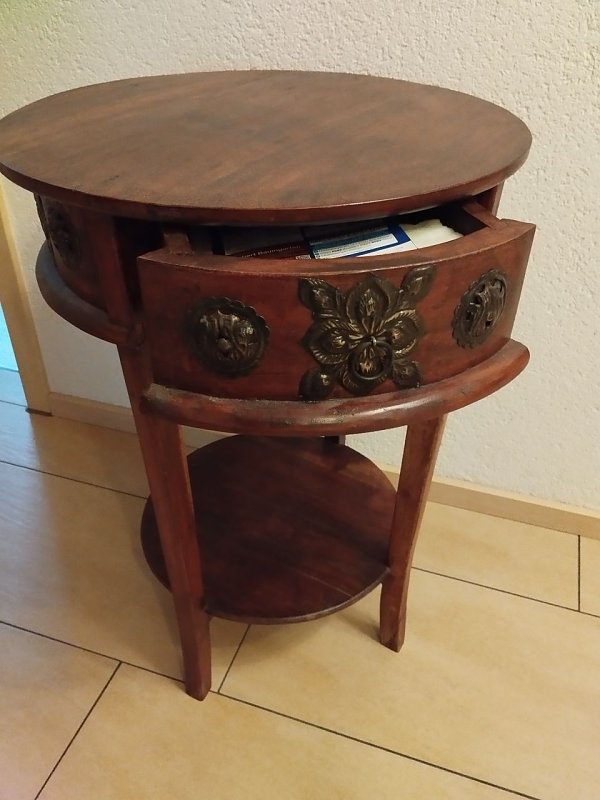 tisch (Foto: ) Biete ein kleines rundes auf Antik gemachtes Tischchen mit Schublade an.