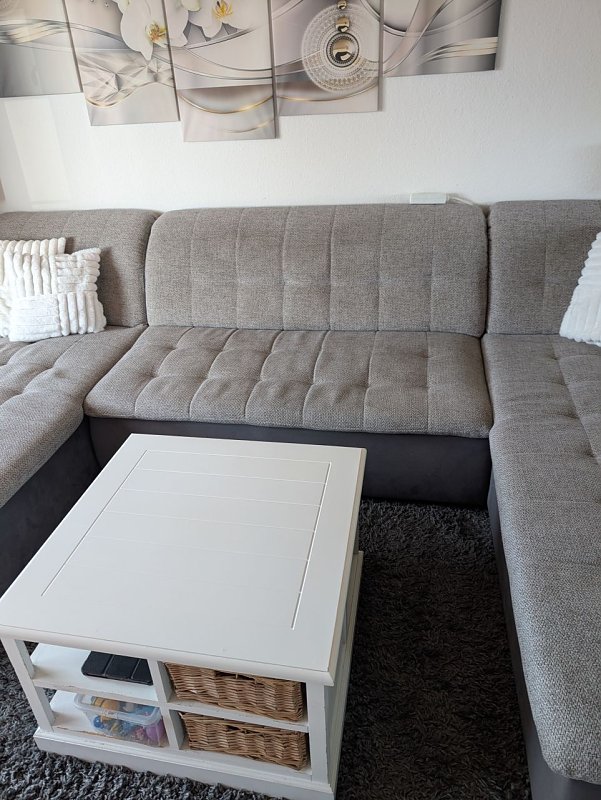 Verkaufe unser Wohnlandschaft. Bei Interesse gerne melden. Ohne Bettkasten und ohne Kissen. 300 Euro. Mit Schlaffunktion