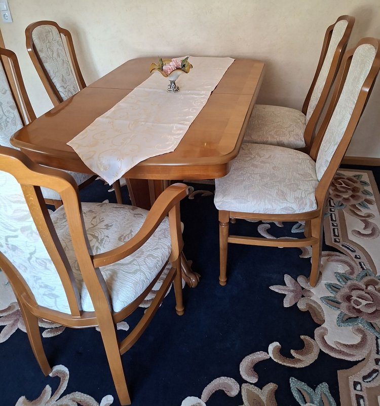 - Exclusiver Esstisch/ Barockstil, Nussbaum furniert, 90cm breit, 75 hoch, 1.40m , ausziehbar auf 2.30m