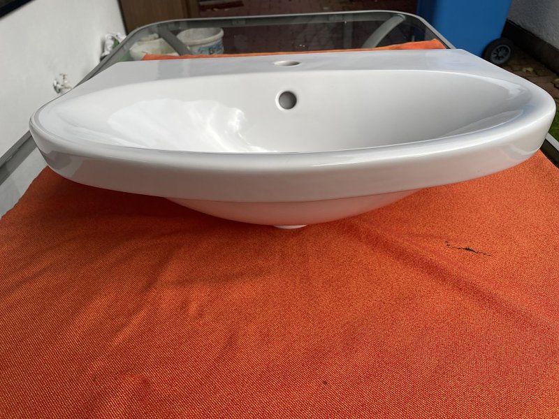 Biete: Waschtisch mit Hahnloch + Überlauf