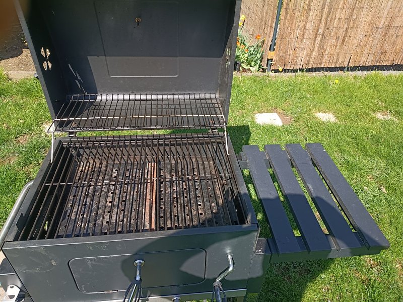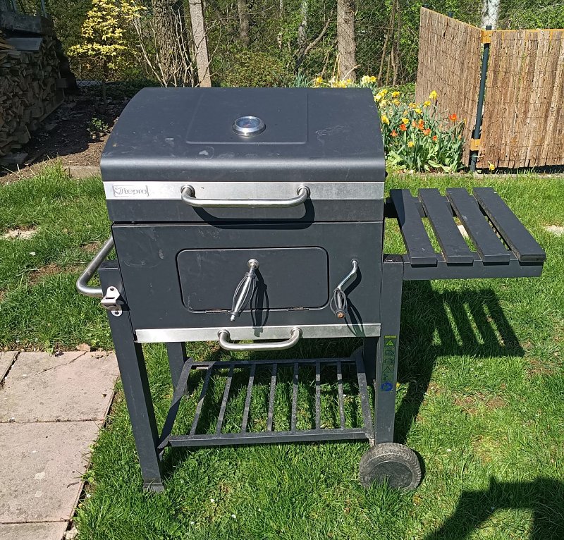 Verkaufe wie abgebildet, einen Holzkohlegrill der Marke "Tepro". Maße der Grillfläche sind 62 x 46 cm. Der Grill ist noch sehr gut erhalten. Freilich gibt es am Rost für Aufnahme der Holzkohle und dem Blech (Auszug) zur Aufnahme der Asche Gebrauchsspuren. Der eigentliche Grillrost (zweiteilig) ist in einem sehr guten Zustand, keine Beschädigungen. Oberfläche top. Der Grill wurde sorgfältig gereinigt und war ständig abgedeckt in einem Schuppen. Für den Transport ist er zerlegbar. Preisvorschlag 50€ VB
