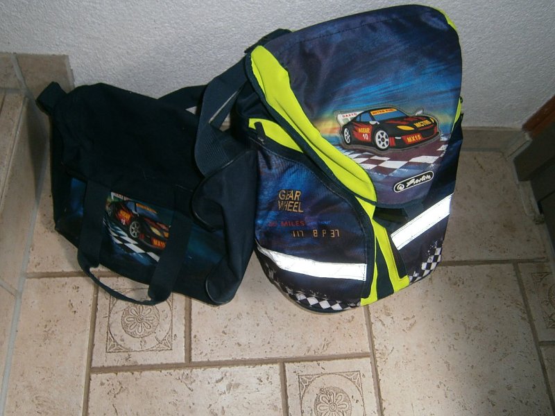 Biete: Herlitz Schulrucksack mit Motiv Auto dazu Sporttasche für 5 Euro