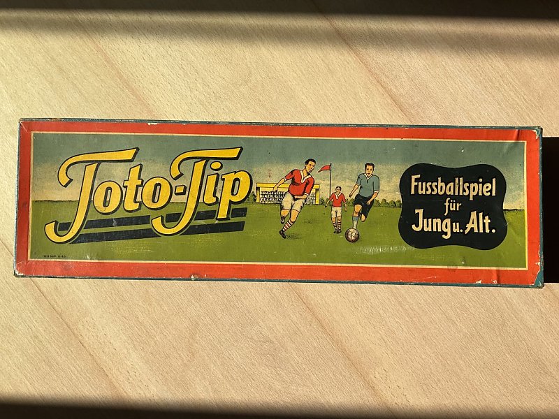 Tischfußballspiel, Tipp-Kick, bestehend aus Spielfläche, 2 Toren, 4 Figuren, Würfel/Ball,Schachtel für 1€ in NDH zu verkaufen. Tel.0160/96860329