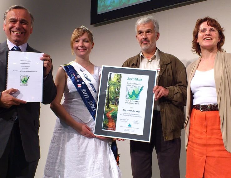 Wanderer orientieren sich an diesem begehrten Zertifikat, belegt es doch mit den strengen Prüfkriterien die hohe Qualität eines Weges. Für Wanderregionen in ganz Deutschland sind zertifizierte Wege ein willkommenes Marketinginstrument und zugleich aber auch Verpflichtung. Was es bedeutet, den länderübergreifenden Karstwanderweg zum Zertifizierungsverfahren anzumelden, das wissen die Mitglieder der federführenden Fördervereine am Karstwanderweg ganz genau.