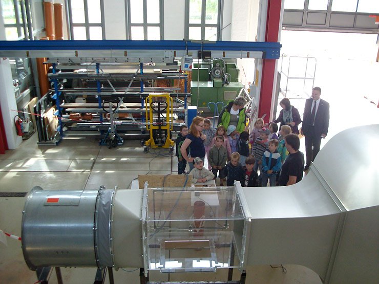 In der Führung, konnten die Kinder neben den Chemieräumen einen Einblick in einen Hörsaal und das Büro von Prof. Wagner bekommen. Wie kleine Studenten hörten sie aufmerksam zu und hatten sichtlich Spaß bei den Vorführungen. Besonderer Höhepunkt war die Präsentation eines Windkanals, durch den wissenschaftliche Mitarbeiter künstlichen Nebel schossen. Schließlich zeigten sie einen Roboter, der sich wie von Geisterhand selbstständig an einer schwarzen Linie entlang bewegt.