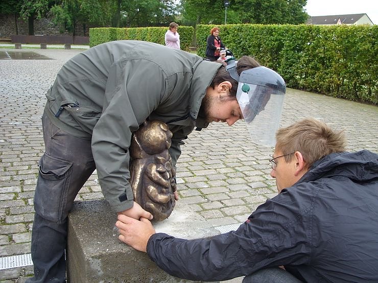 Beide Käfer wurden heute von der Gießerei Ihle aus Dresden aufgestellt. Diese brachte nach einem kleinen chirurgischen Eingriff an den Fühlern auch den Moneti wieder an seinen Platz vor der Kreissparkasse zurück.