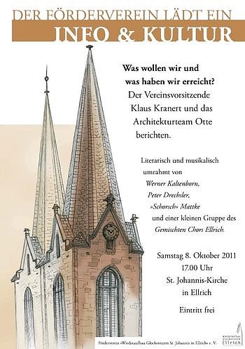 In einer Informationsveranstaltung am kommenden Samstag (8. Oktober) um 17 Uhr in der St. Johanniskirche Ellrich informiert der Vereinsvorsitzende Dr. Klaus Kranert über die Ziele und Aktivitäten des Fördervereins. Das Architekten-Team Otte aus Sangerhausen stellt das Bauprojekt anschaulich vor und erläutert die erforderlichen Maßnahmen zur Realisierung des ehrgeizigen Vorhabens.