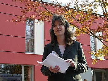"Der Neubau mit 78 Betten ermöglicht jetzt insgesamt 130 Betten in der Rothleimmühle. Er soll das bestehende Herbergskonzept erweitern und mit seinem neuartigen Raumkonzept neben Schulklassen und Reisegruppen auch neue Zielgruppen ansprechen, zum Beispiel Familien und behinderte Menschen", berichtet Teamleiterin Carmen Witzel (Foto).