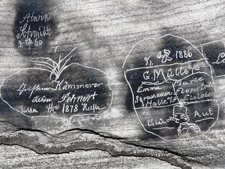 Historische Inschriften aus dem 19. Jahrhundert in der Wimmelburger Schlotte.