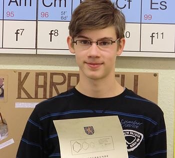 Lehrer und Mitschüler am Schillergymnasium gratulieren recht herzlich und wünschen dem jungen Naturwissenschaftler alles Gute für seine weiteren Vorhaben.