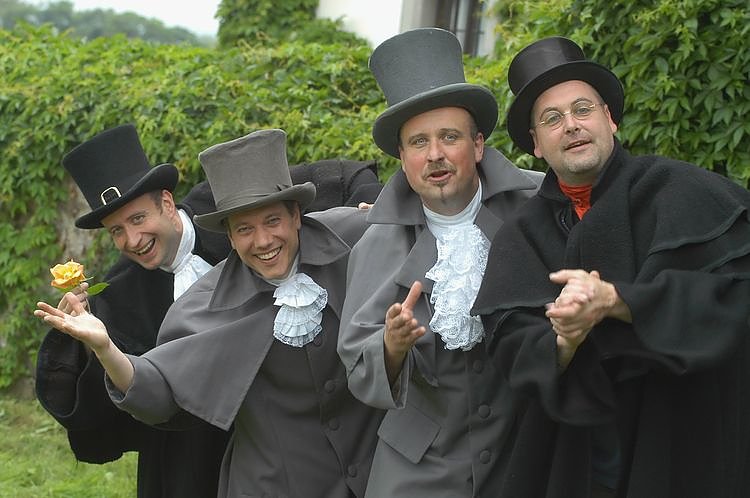 Die Traminer aus Dresden bieten Mundwerk der Extraklasse. Das Vokalquartett, das ursprünglich im Dresdner Kreuzchor und bei den Dresdner Kapellknaben sang, ist seinen Wurzeln treu geblieben: Stimmgewaltig vereinen sie perfektionierten A Capella-Gesang - wobei sie nicht Halt machen vor neu arrangierten, modernen Hits - mit einer hinreißenden Kostüm-Schau. Witzig, charmant und gut gekleidet begleiten Peter Röttig, Matthias Trommler, Michael Reich und Hans-Udo Vogler nun die Bleicheröder auf ihrem Weg in das noch junge Jahr 2012.