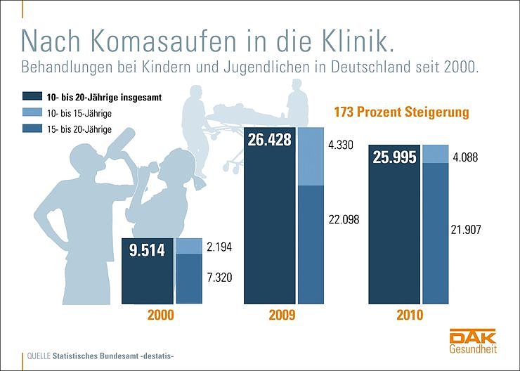 Autor: nnzLaut offizieller Landesstatistik sank die Zahl der Betroffenen im Vergleich zu 2009 zwar um 33,3 Prozent. Im Vergleich zum Jahr 2003 sind die alkoholbedingten Klinik-Einlieferungen in der Region jedoch um 140 Prozent angestiegen, sagt Reinhard Puschner von der DAK-Gesundheit Sondershausen. Die Krankenkasse setzt daher ihre Präventionskampagne bunt statt blau – Kunst gegen Komasaufen fort.