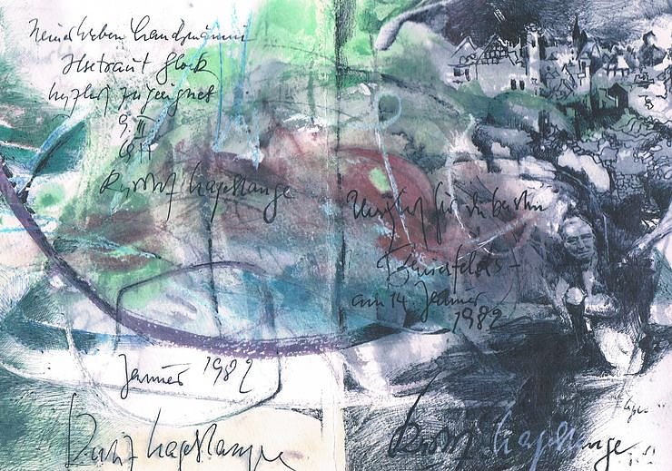 Das erstgenannte Werk ist zur Zeit in zwei Ausgaben im Kunsthaus Meyenburg in der Sonderausstellung Rudolf Hagelstange - Literatur und Kunst zu sehen. Die erste Ausgabe stammt aus dem Jahr 1950 und zeigt eine zarte Zeichnung von Franz Deringer (1903-1950) am Buchanfang. Der Maler und Illustrator lebte in der Nordschweiz in Unterstammheim, wo auch sein künstlerischer Nachlass verwaltet wird. Er schuf Federzeichnungen, Aquarelle und Ölbilder.