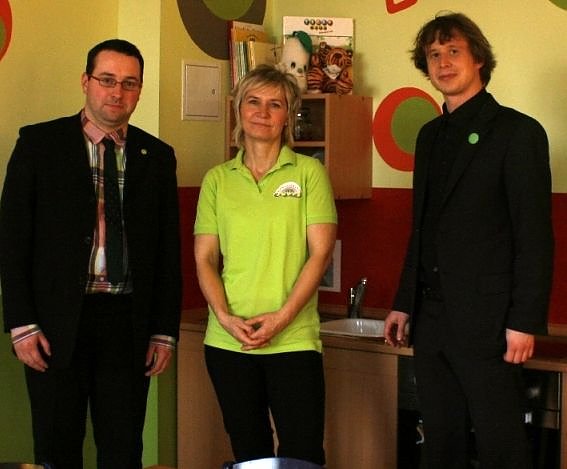 John Dauert, Landratskandidat, Veronika Hartleb, Leiterin der Kita Abenteuerland und Christian Darr, Oberbürgermeisterkandidat