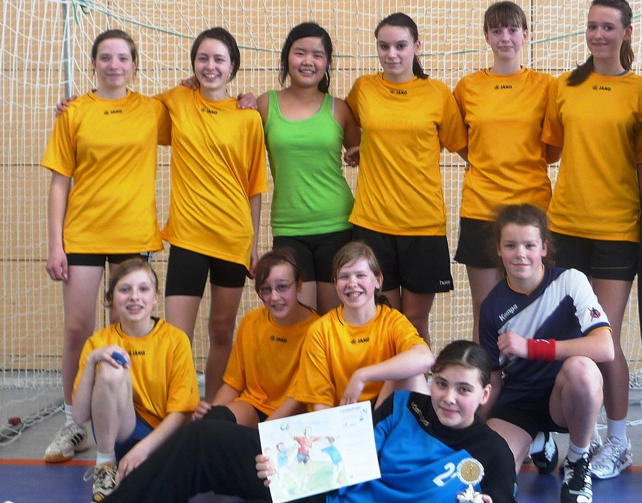 Torhüterin Josefin Friebel, Anna Reinhardt (13), Jenny Struck (12), Pauline Hankel (14), Chantal Chen, Jenny Galonska (5), Larissa Förster, Nelly Frank, Friederike Mansel, Lea Ruff und Wiebke Lendewig haben in der Wettkampfklasse III, dazu zählen die Jahrgänge 1997 bis 2000, mit zwei Siegen und einer Niederlage in der Oscamp Halle in Bad Langensalza den Landespokal erobert. Das Team war im laufenden Schuljahr bereits Kreispokalsieger geworden. Ihren Siegeszug konnten die Humboldt- Mädels beim Regionalfinale gegen die Konkurrenz aus den Schulamtsbereichen Artern, Worbis und Schlotheim fortsetzen.