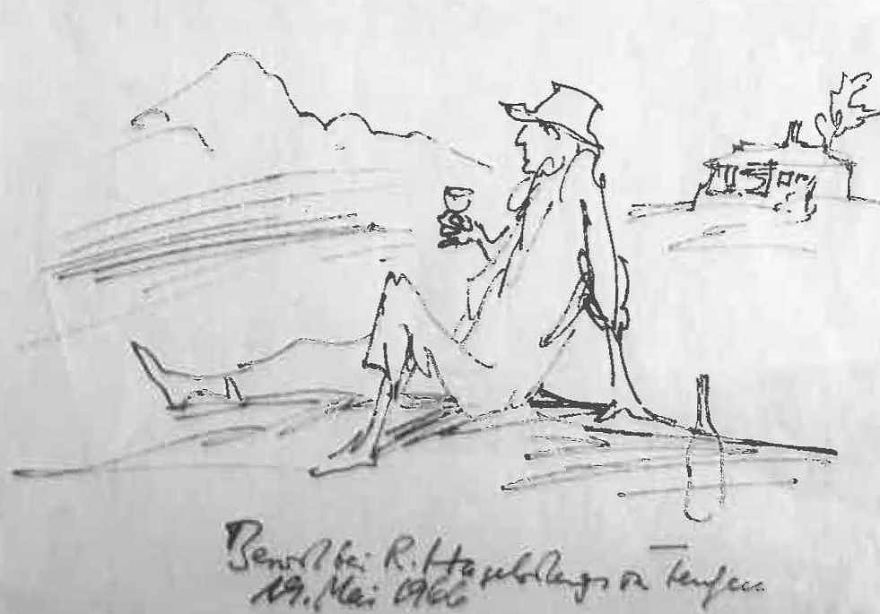 Zum Abschluss der Hagelstange-Ausstellung im Kunsthaus Meyenburg, die am 18.3. um 17.00 Uhr endet, sollen vier weitere Künstlerinnen und Künstler vorgestellt werden, die Bücher von Rudolf Hagelstange illustrierten und in der Villa mit Bildern und Büchern präsent sind.Helmut Bibow gehört zu den Zeichnern, Illustratoren und Karikaturisten, die Hagelstange noch während des Krieges kennenlernte, und zwar in Italien. Der 1914 in Essen Geborene war im Krieg zuerst einer Propagandakompanie als Frontmaler und Zeichner, später als Dolmetscher zugeteilt. Kunst hatte er in Essen und Düsseldorf studiert, lebte dann in Paris und reiste von dort zu Studienzwecken durch Südfrankreich, Spanien, Italien, den Balkan bis hin zum Nahen Orient und Nordafrika. Seit 1938 wirkte er in Berlin als freier Illustrator. Nach dem Krieg kehrte er für vier Jahre dorthin zurück und zog dann nach Stuttgart.