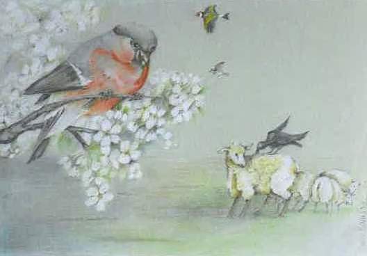 Die Künstlerin Doris Bambach illustrierte Hagelstanges Verse Das Blumenalphabet mit strahlenden Bildern. Beide hatten ein weiteres Vorhaben, ein Vogelalphabet. Des Dichters Tod verhinderte die Herausgabe, aber Bambach stellte zwei Bilder zur Verfügung mit Buchfink, Kranich, Adler und Pfau. Geboren ist sie 1936 in Darmstadt, durch ein Studium an der Offenbacher Hochschule für Gestaltung eröffnete sich für sie eine 20jährige Karriere als Grafikerin bei verschiedenen Fernsehsendern. Seit 1993 ist sie freiberufliche Malerin, Grafikerin und Objektkünstlerin. Fantasie und Technik sind meine Mannschaften auf den Spielfeldern Leinwand, Papier und Holz. Im Kampf mit Farbe, Pinsel, Stift wird geprügelt, verhandelt, Freundschaft geschlossen und gehofft auf die eigene Zufriedenheit und den Beifall des Betrachters., so die Künstlerin, die in Bensheim lebt.