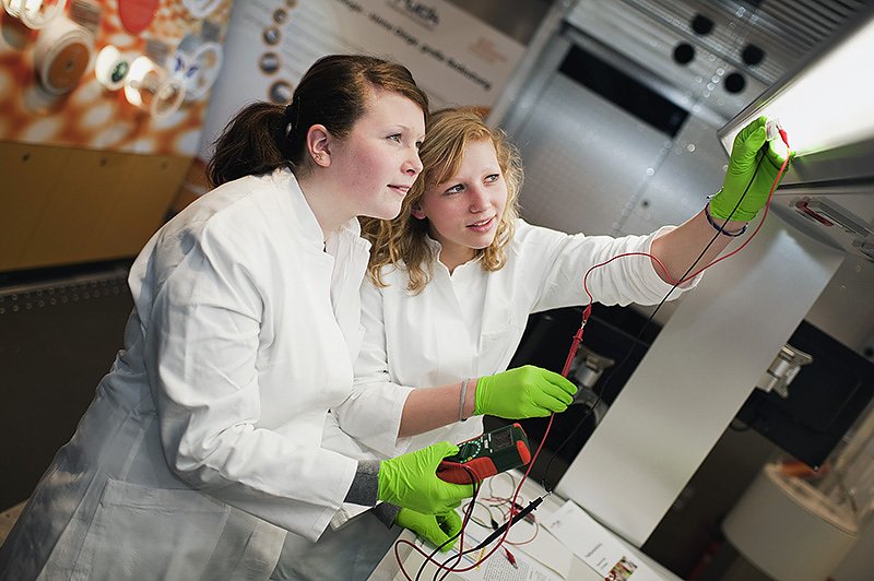 Denn sie werden sowohl eigene Ideen entwickeln, wie Textilien mit Hilfe der Nanotechnologie zukünftig beschaffen sein könnten, aber auch über die Möglichkeiten ihrer Umsetzung in der Praxis diskutieren. Anschließend legen die Schüler selbst Hand an die Nanotechnologie: In Zweierteams bauen sie funktionstüchtige Grätzelzellen, die in flexibler Bauweise ihren Weg in die Textilbranche finden und dort unterschiedlichste und zugleich völlig neue Anwendungsfelder eröffnen könnten.