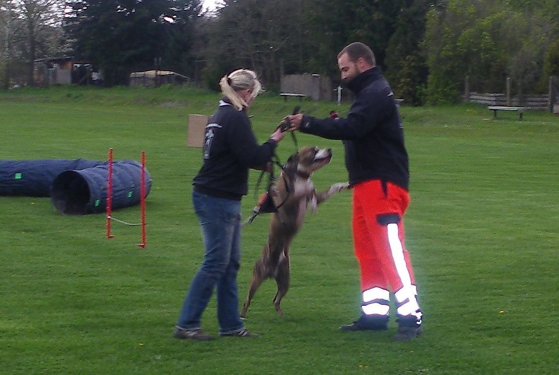 Verschiedenartige Hunderassen - vom Chihuahua bis zum Pit Bull - sind in der Lage Menschenleben zu retten. Der 1. Vorsitzende der Ausbildungs- und der Einsatzleiter der Rettungshundestaffel, Herr Herwig belegten mit dieser Vorführung, dass das Thema Kampfhunde oft mit gefährlichen Vorurteilen behaftet ist.