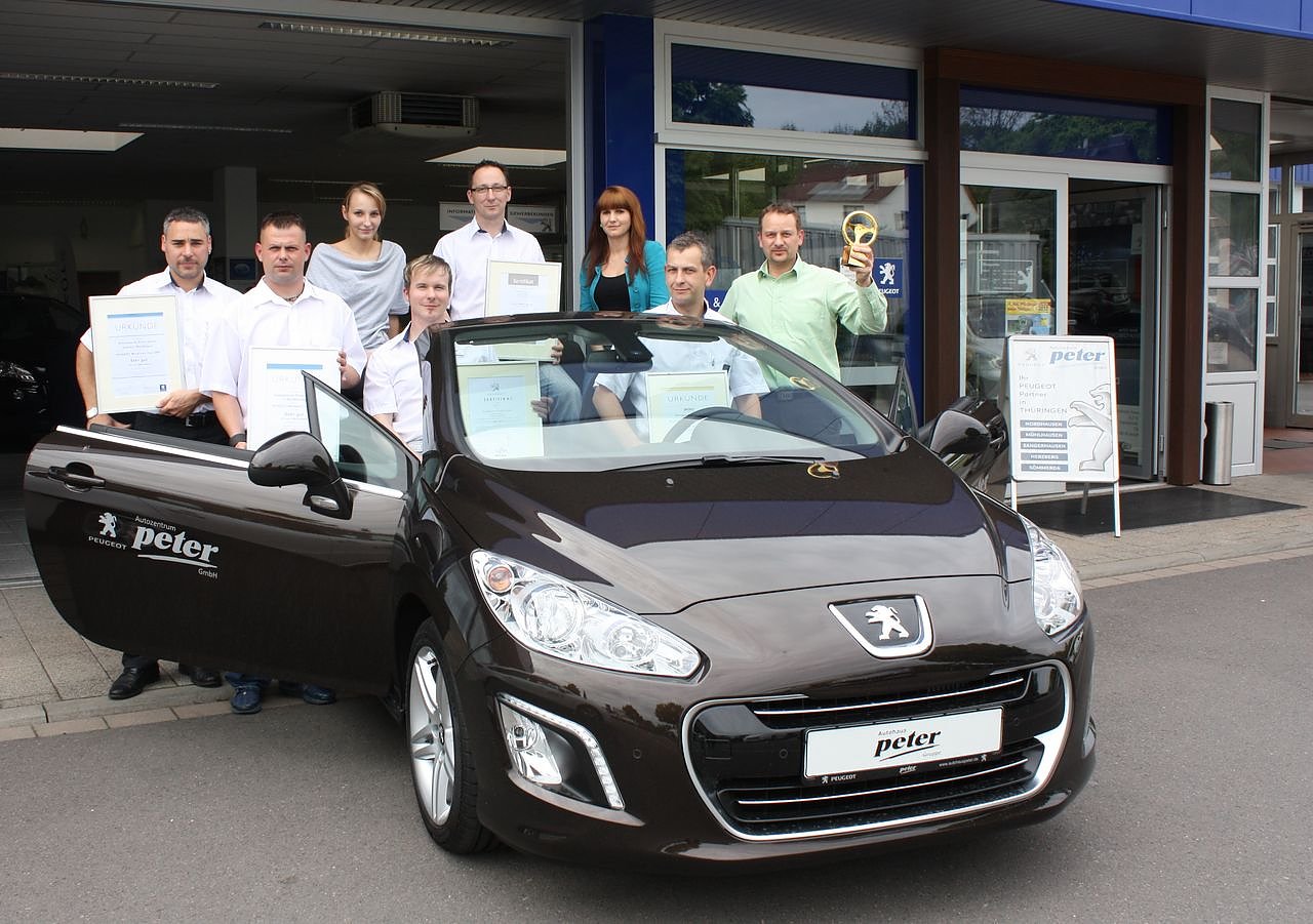 Das bereichsübergreifende Wettbewerbsteam des Autozentrum Peter hatte sich in der Vorrunde durch überdurchschnittliche Leistungen unter 75 Peugeot-Händlern für den Endausscheid in Saarbrücken qualifiziert. In dem spannenden Finale, an dem Anfang März 2012 zehn Mannschaften eingeladen waren, sicherten sich Serviceleiter Marko Simon, Serviceberater Christoph Vogler und Peugeot-Techniker Martin Lohoff den ersten Platz.