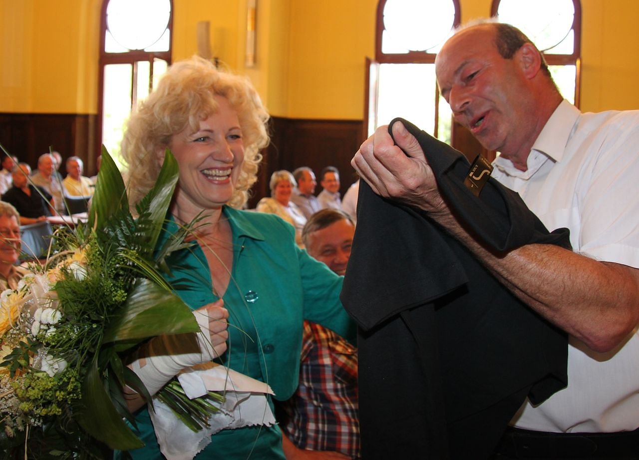 Autor: nnzJoachim Claus hatte zu Beginn der Sitzung der designierten Landrätin Birgit Keller (LINKE) gratuliert und ihr neben Blumen ein Poloshirt vom Landratsamt geschenkt (Aufschrift: Wir sind für sie da). Sie hat sich gefreut – mit dem scherzhaften Kommentar, dass das Shirt ja schwarz sei, voraufhin der Landrat konterte, im Wappen sei ja auch rot drin.