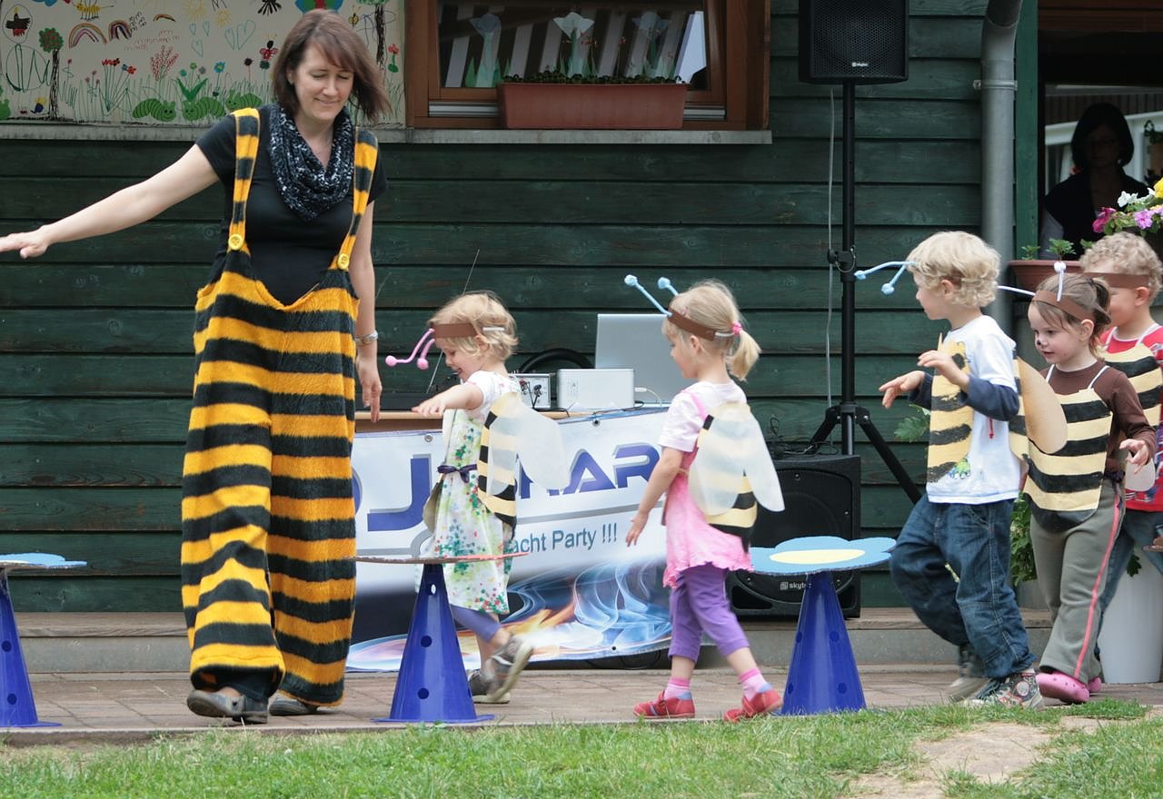 Autor: nnzNach dem Programm der Kinder, die sich als Käfer und Bienen, Schmetterlinge und Blumen verkleidet hatten, standen die Hüpfburg und die Torwand im Mittelpunkt. Die Forscherstation mit spannenden Experimenten lockte die Eltern und Kindern zum entdecken.