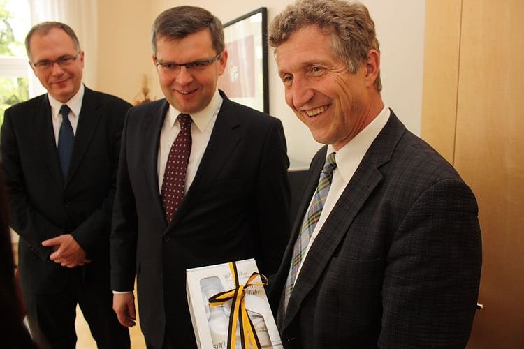 Der 1. offizielle Termin von Dr. Klaus Zeh (rechts) im Amt als Nordhäuser Oberbürgermeister war ein Gespräch im Nordhäuser Rathaus mit seinem Kollegen aus der polnischen Partnerstadt Ostrow-Wielkopolski, Jaroslaw Urbaniak (2.v.r.) und dem Vorsitzenden des Stadtrates von Ostrow-Wielkopolski, Jaroslaw Lisieki (links).
