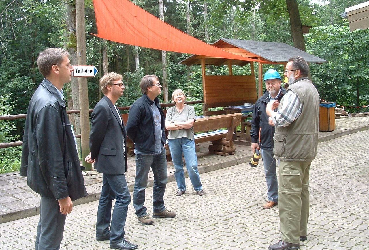 Nach einer Besichtigung des Bergwerks erläuterte Vereinsmitglied Eberhardt den Gästen die zukünftigen Projekte und Vorhaben des Vereins. Gemeinsam wollen wir die vielfältige und einzigartige Natur-und Geologielandschaft im Thüringer Südharz für den Tourismus erschließen.