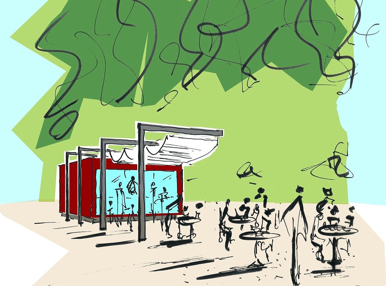 Spätestens in der kommenden Saison soll der aktuelle temporäre Imbissbetrieb durch einen festen Mehrzweckpavillon inklusive behindertengerechter Toilette (siehe Ideenskizze) ersetzt werden. Sämtliche Zu- und Ableitungen dafür sind schon in der Erde, so Meyer weiter.