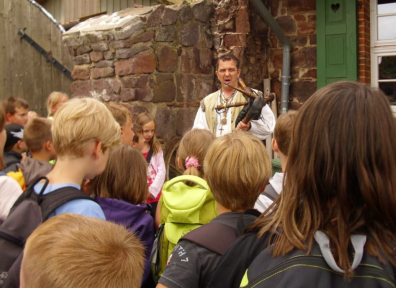 Autor: nnzNach dem Mittagessen wanderten wir mit unseren Erzieherinnen etwa zwei Stunden nach Neustadt auf die Burgruine Hohnstein. Unterwegs sangen wir Lieder und machten kleine Pausen. Als wir ankamen, gab es gleich Donuts und Getränke zur Stärkung. Danach versammelten sich alle Kinder am Burgtor und der Wirt, Herr Prengel, spielte für uns auf dem Dudelsack.