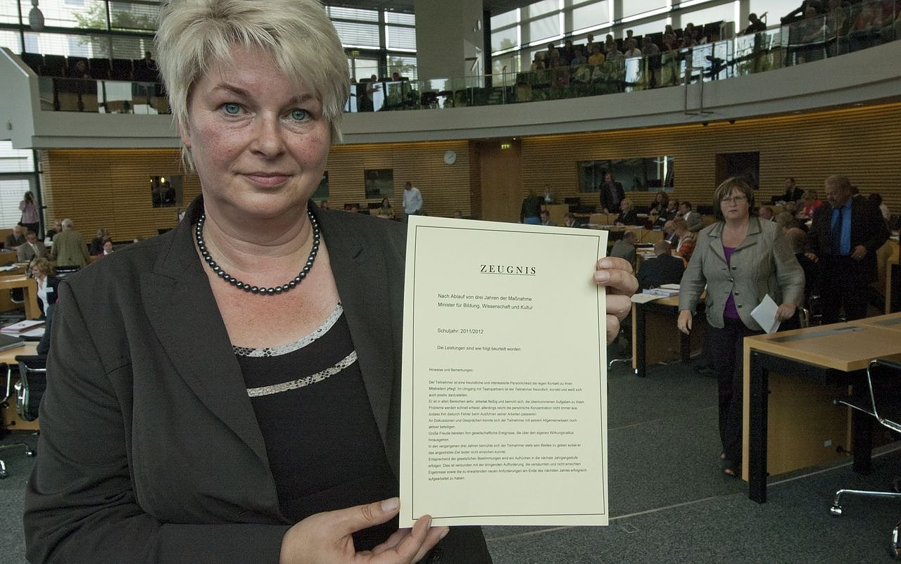 Autor: nnzDa Sie allerdings erst Ihr drittes Jahr als Minister absolviert haben - und die Koalition sie weiter stützt - befinden Sie sich also in einer Doppeljahrgangsstufe und rücken so ein weitere Klassenstufe auf. Ein entsprechendes Zeugnis überreichte sie dem Minister am Rande der aktuellen Stunde.