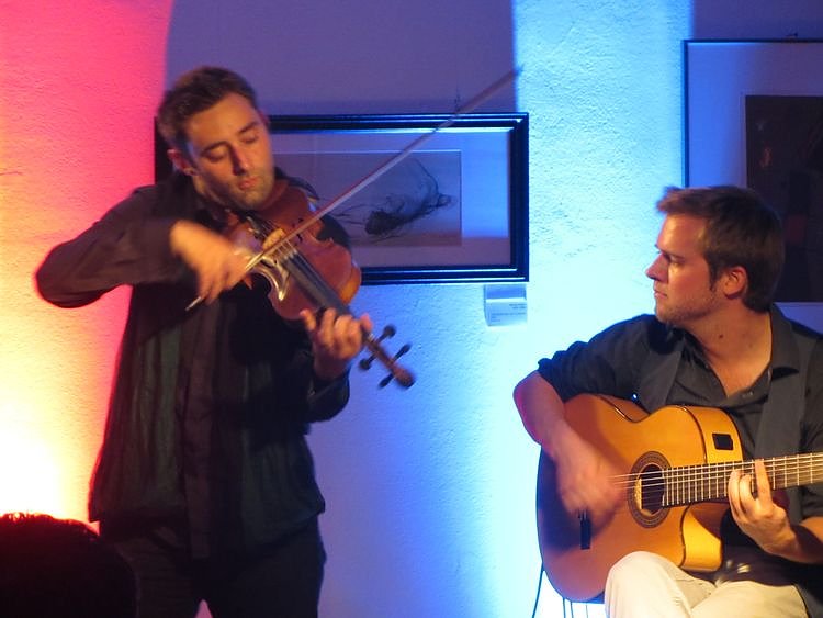 Stellenweise erinnerte das perfekte Zusammenspiel der zwei Gitarren mit einer Geige an die legendären Aufnahmen von "Friday Night in San Francisco" der drei Gitarreros Mc Laughlin, Meola und de Lucia, wobei "Friday night in Nordhausen" wie erwähnt eine phantastsich gehandhabte Violine im Spiel war.