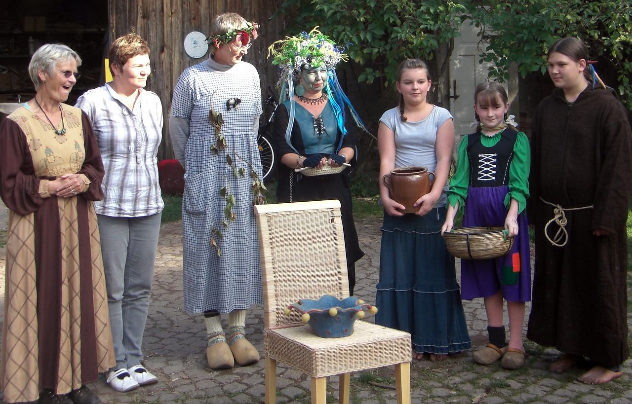 Das Fest selbst beginnt um 10.00 Uhr mit dem Einzug der alten Spinnkönigin des Jahres 2011. Noch amtiert die zwölfjährige Anne Schmidt (Bild) aus Neustadt. Um 11.00 Uhr gibt es die Premierenvorstellung des Films Die Sage von der Queste der im Frühsommer mit den Kindern der Ilfelder Grundschule als Hauptdarstellern gedreht wurde.Um 12.00 Uhr führt Ehemann Frank Tuschy die hofeigene Apfelsaftpresse vor, die allein mit der Hilfe von Wasserdruck arbeitet und mit der bis zu 90 Liter Apfelsaft in einem Durchgang gepresst werden können. Freunde altertümlicher Technik kommen um 14.00 Uhr voll auf ihre Kosten. Dann nämlich wird die mittlerweise fast 100 Jahre alte und vier Tonnen schwere Wollkämmmaschine angeworfen, die ursprünglich über Transmission von einer Dampfmaschine angetrieben wurde. Inzwischen übernimmt diese Aufgabe allerdings ein 5 kW Drehstrommotor.